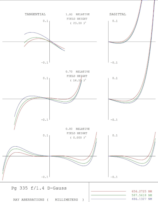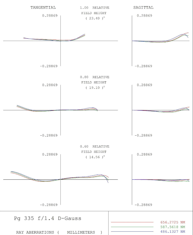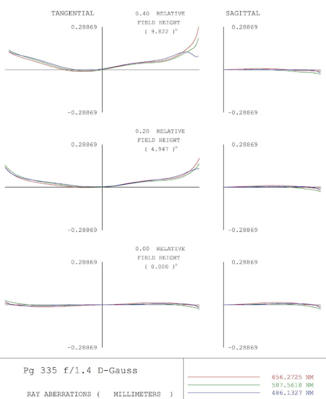 Figure 12 – Field Curves for the 50mm f/1.4 lens