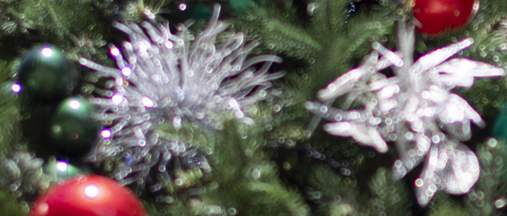 That’s not the whole story, though. Below are crops of two out-of-focus regions taken from the image CORNERS (at f/1.2):