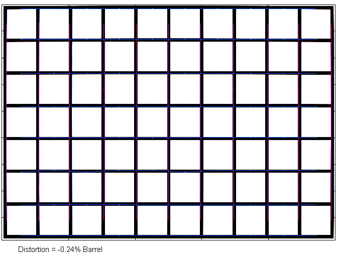 The Fujinon isn’t corrected regarding image distortion. In RAW images, we can observe a medium pincushion distortion across the zoom range, with a peak of 2.7% at 70mm.