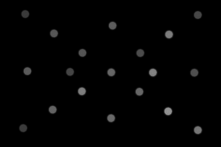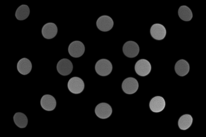 On the positive side, the disc shape remains circular across a broad image field. Only the corner discs are only slightly deteriorated. Stopping down restores the corner discs.