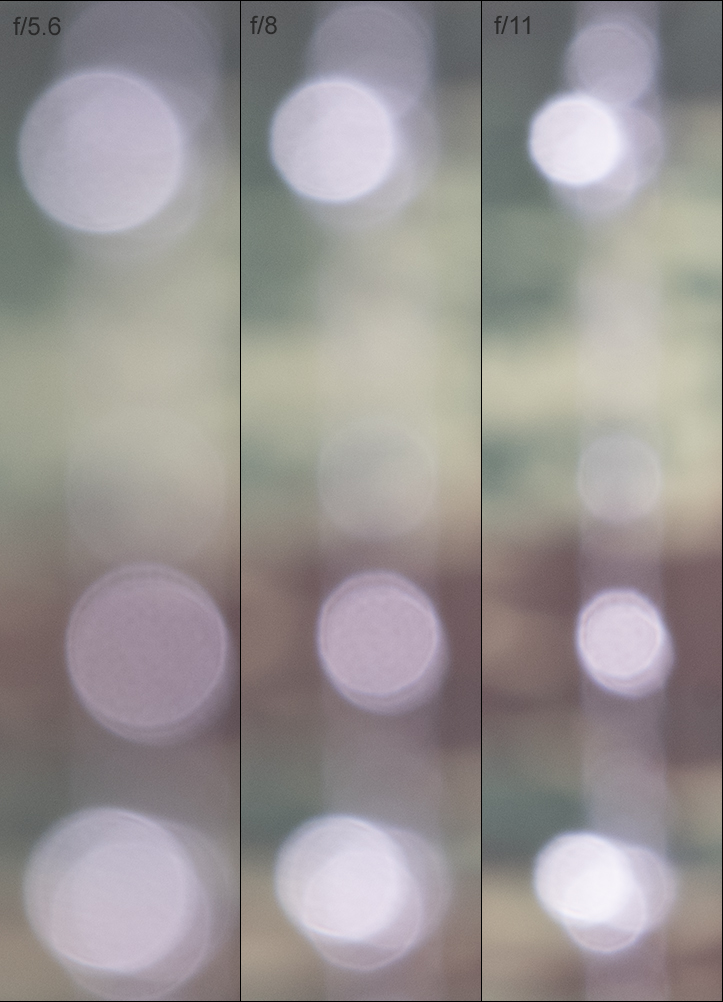 The highlight discs maintain a near-circular shape across much of the image frame, as you can see below. Only the corner discs are distorted. Stopping down to f/8 will restore them already—at 180mm at least.