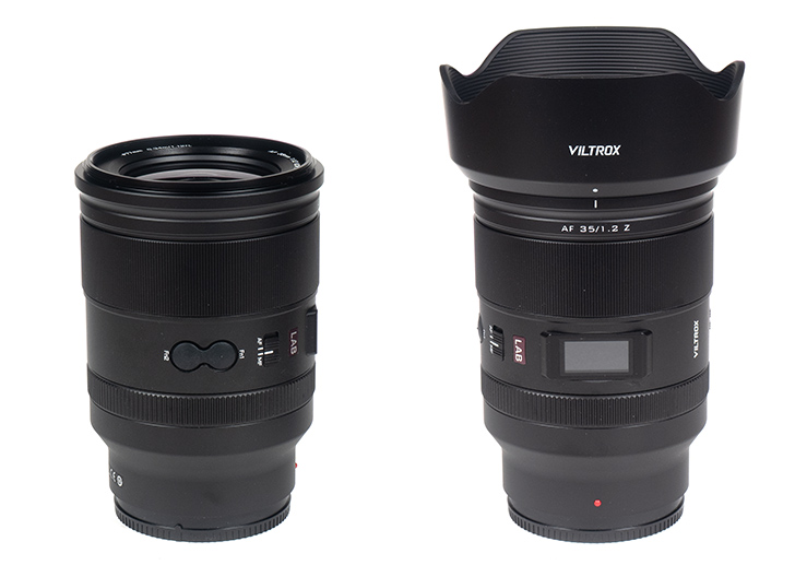 The first thing you’d notice after unboxing is the size and especially the weight, although that’s to be expected from an f/1.2 lens. Overall, we’d rate the build quality of the Viltrox AF 35mm f/1.2 LAB Z as excellent. It’s an all-metal construction, including weather sealing and a smoothly turning focus ring. In terms of controls, there is also a de-clickable aperture ring, 2 custom buttons, and the AF/MF switch. We aren’t huge fans of the unmarked, infinitely scrolling aperture ring, but this approach may make life a little easier for the video folks. The lens has an internal focusing system, including a dual floating system for close focus correction. A petal-shaped lens hood is included. It uses a “Hyper-VCM” (Voice-Coil Motor) for focusing. A VCM is an electromagnetic linear actuator where the magnet is fixed, and the coil is mobile. It has to perform some heavy work because of the weight of the glass elements here. We’d still rate the AF speed as very good. Manual focusing works by wire – as usual. Unusual is the TFT display that is showing the focus distance and current aperture. Whether such a feature is really needed is debatable, but it doesn’t hurt either.