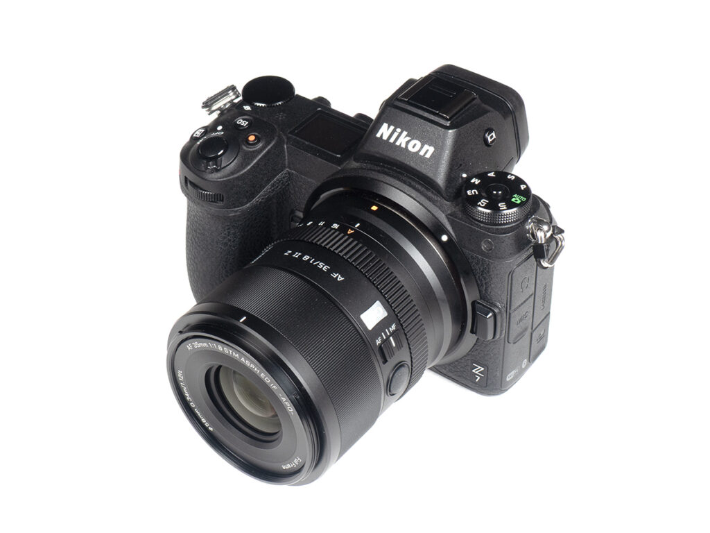 The Viltrox AF 35mm f/1.8 EVO is the 3rd EVO lens by Viltrox. And given that the 85mm f/2 EVO and 55mm f/1.8 EVO performed nicely, this raises some expectations. As usual, the 35mm f/1.8, available in both Nikon Z and Sony E-mount, is competitively priced at 395 USD / 459 EUR / 385 GBP/ 579 CAD /73,100 JPY, although this does represent a price hike of ~100 USD over the 85mm f/2 EOV. Technically, this is a second-generation lens, which is also printed as such on the lens. The mark I has a very different optical design, and it wasn’t a designated “EVO” lens either. Viltrox claims that this new lens uses an APO (“Apochromatic”) design, which is also printed on the front ring (“AF 35mm f/1.8 STM ASPH ED IF -APO-“).